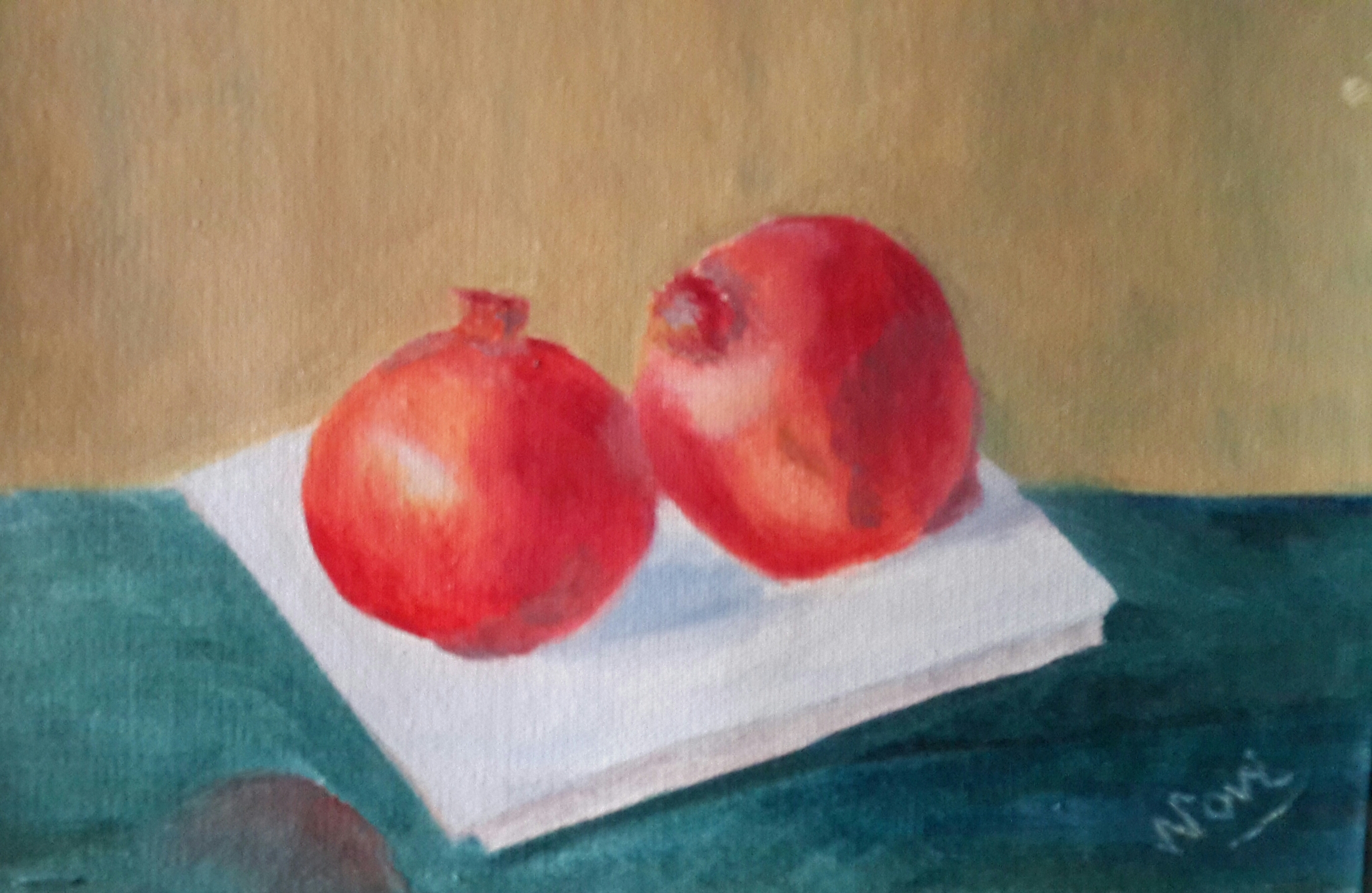 #114 Still Life with Pomegranates II (8H X 11W) Published April 18, 2019 at 2724 × 1773 Still Life with Pomegranates II Oil on Canvas (8H X 11W) Oil Painting by Navdeep Kular Still life painting of pair of pomegranates has been painted in single session. Thus, it can be categorised as alla-prima painting.