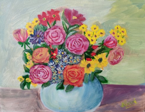 IMG_20250701_184502 Published July 1, 2025 at 3650 × 2823 Multi coloured flowers in a vase (18 x 14) Flowers in a vase oil painting by Navdeep Kular