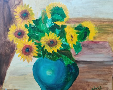IMG_20250701_184532 Published July 1, 2025 at 3734 × 2991 Sunflowers in a Blue Vase (18 x14) Sunflowers in a Blue Vase oil painting by Navdeep Kular