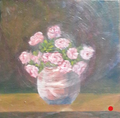 #81 Pink Roses in a Vase (12 X 12) Published June 18, 2022 at 1689 × 1667 Pink Roses in a Vase Pink Roses in a Vase Sold Oil Painting 12 x 12 inches